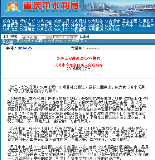 重慶市水利局官網發文評價了我公司代理的彭水縣鳳升水庫工程PPP項目社會投資人招標項目